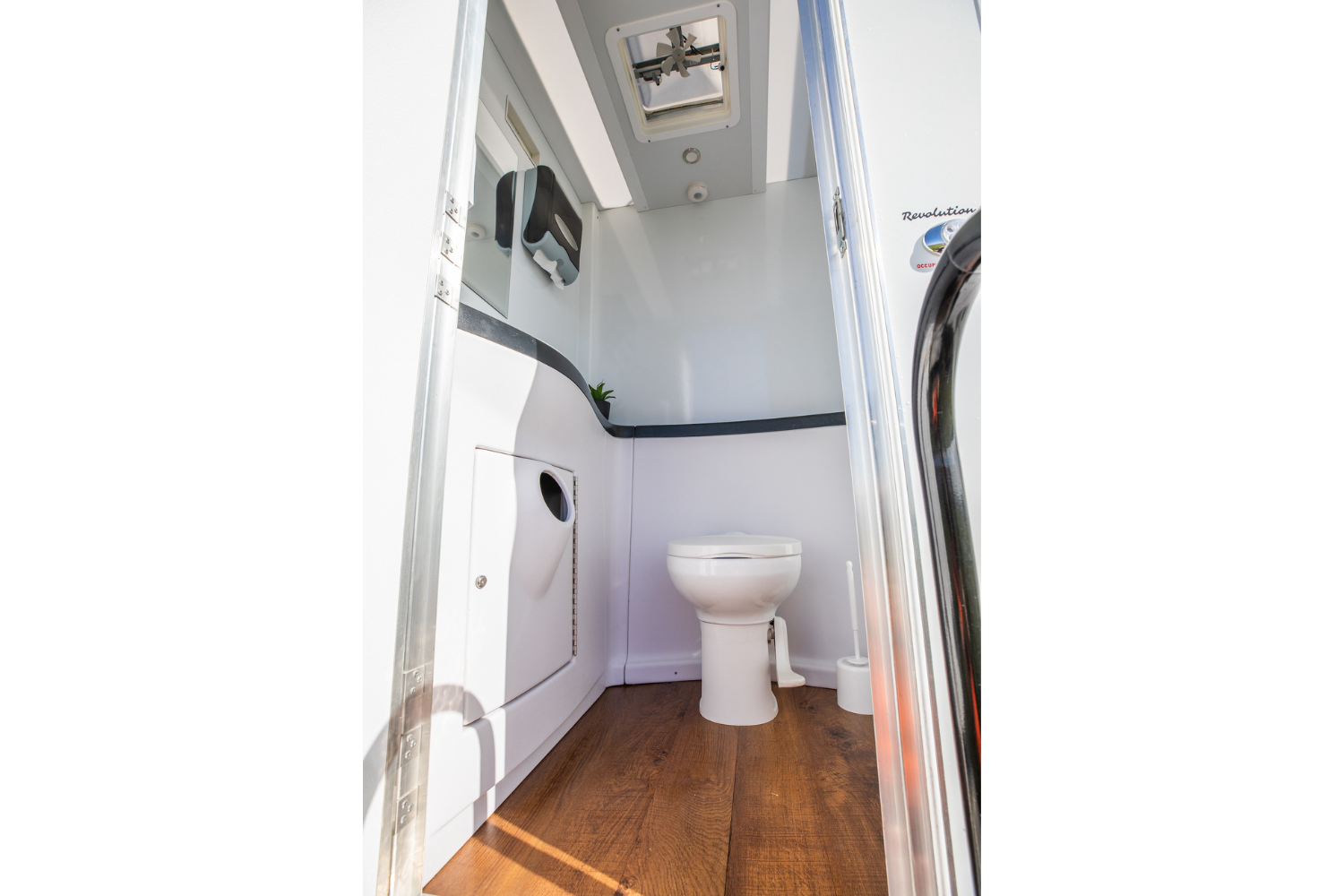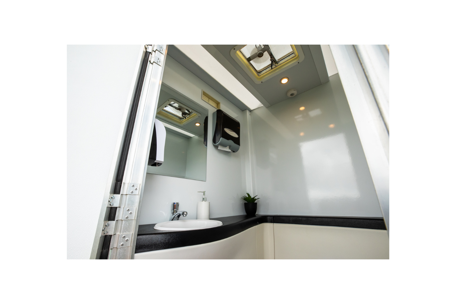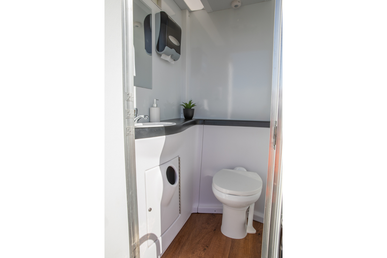 The Twin Pod features two separate, self-contained bathroom cubicles, making it a versatile and convenient solution for any film set, event, party, or wedding. This unit is suitable for 50-150 guests over an 8-hour period.