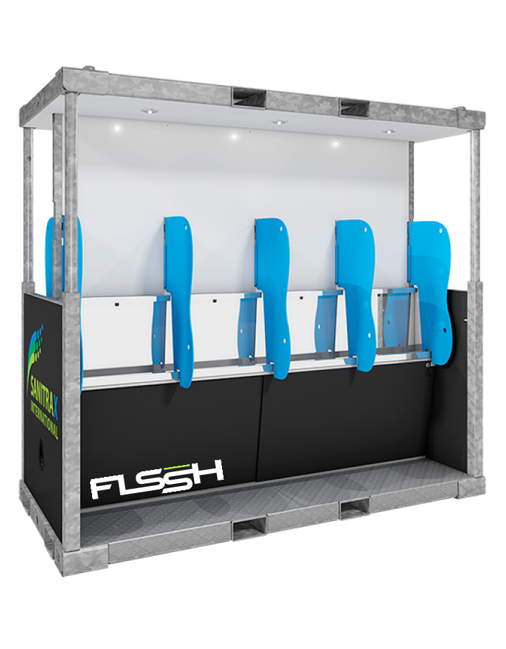 The Sanitrax units brings a modular and eco-friendly lavatory to your next big event. It is not only efficient on water and set up, the expandable unit design allows us to deliver you a number of toilets, fast with a small footprint.